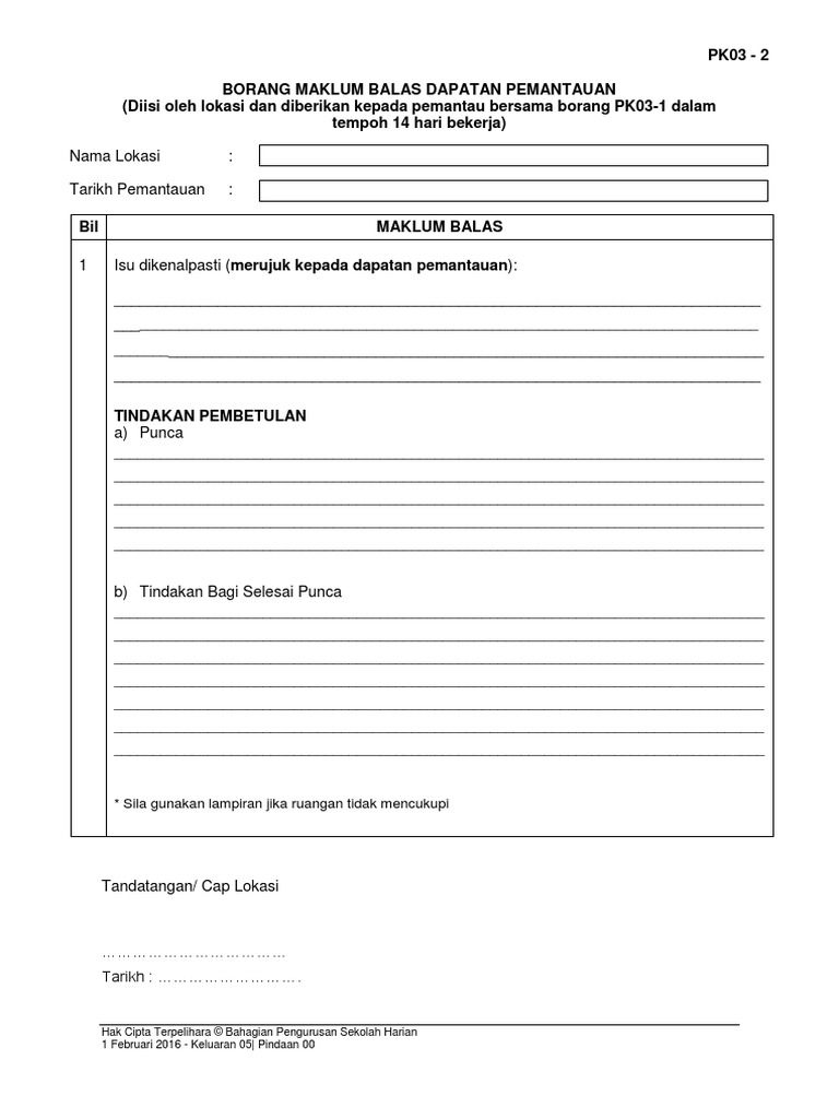 Pk03 2 Borang Maklum Balas Dapatan Pemantauan Doc