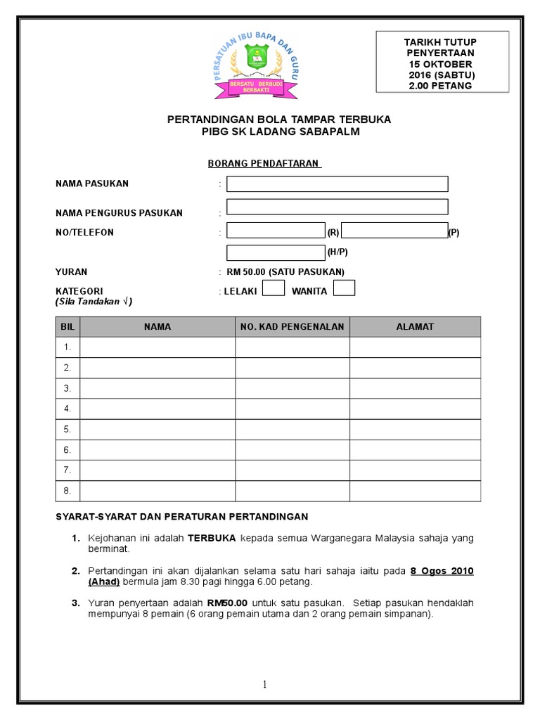 Borang Bola Tampar