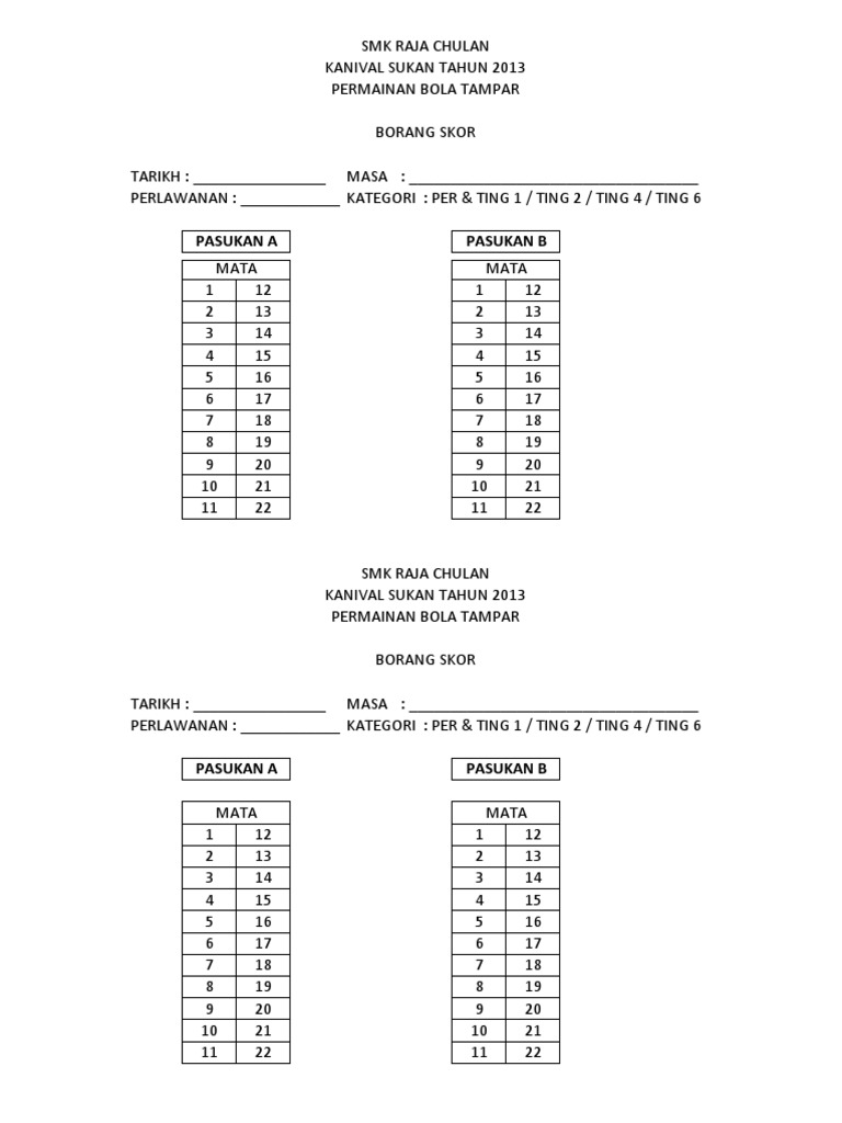Borang Skor Bola Tampar