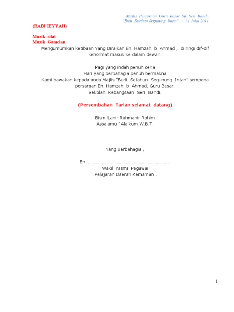 Teks Pengacara Majlis Budi Setahun Segunung Intan
