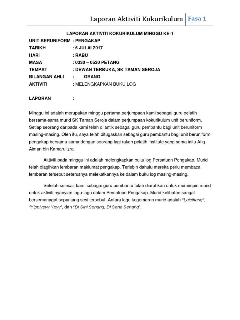 Borang Laporan Aktiviti Kokurikulum Mingguan Docx
