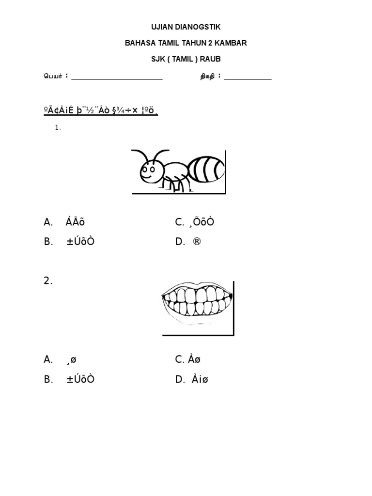 Ujian Dianogstik Bahasa Tamil Tahun 2