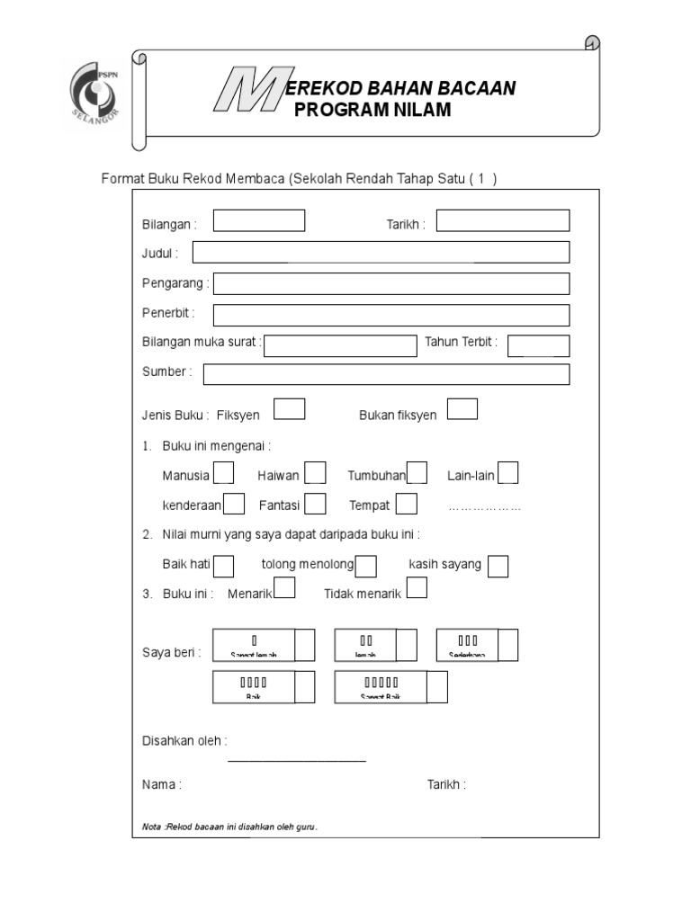 Buku Rekod Bacaan Program Nilam Sk Shopee Malaysia
