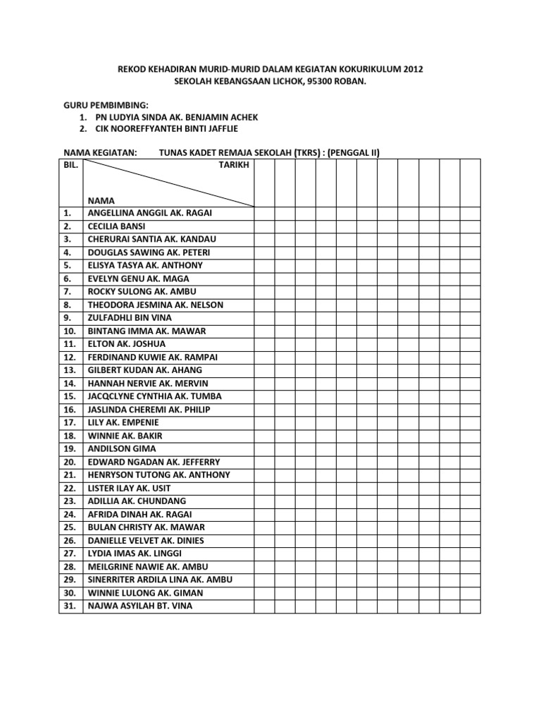 Contoh Rekod Kehadiran Pelajar Pdf Document