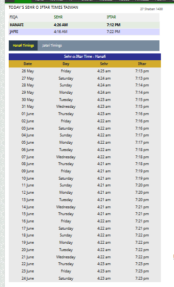 Takwim Waktu Solat Negeri Pahang Sepanjang Bulan Ramadhan 2017