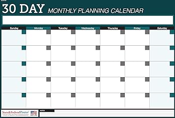 Amazon Com Wall Planner Calendar Undated Dry Erase 30 Days Teal Laminated 40 X 27 Office Products