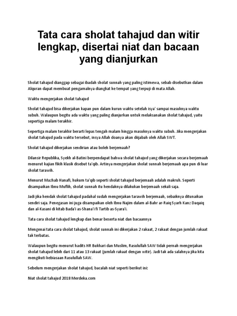Tata Cara Sholat Tahajud Lengkap Bacaan Niat Dan Doa Madureh Com