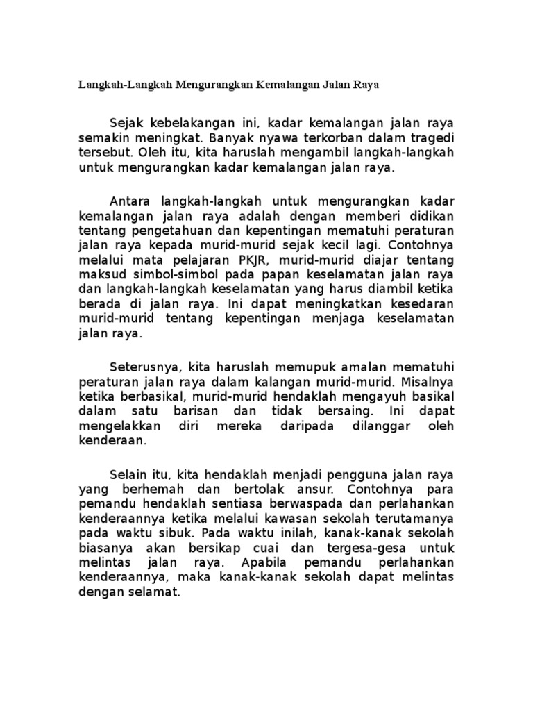 Cikgu Sabar Mohd Karangan Tingkatan 3 Langkah Langkah Mengelakkan Kemalangan Jalan Raya