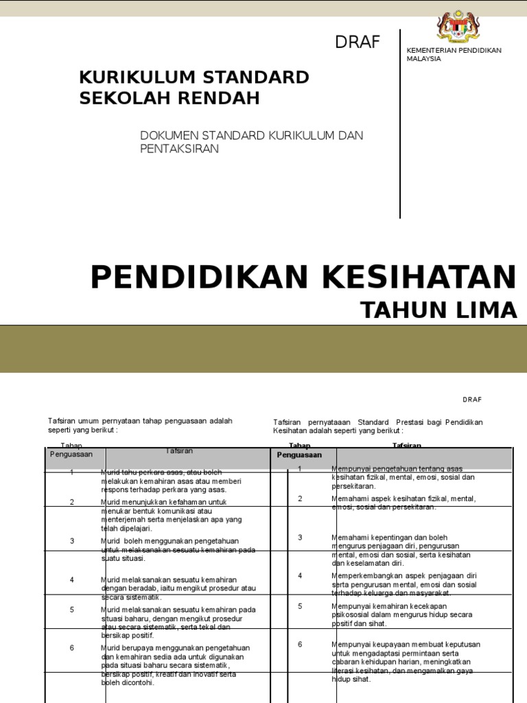 Dokumen Standard Kurikulum Dan Pentaksiran Pendidikan Kesihatan Tahun 5